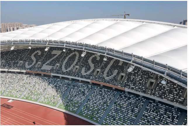 蘇州奧林匹克體育中心體育場是迄今為止中國第一座馬鞍形單層索膜結(jié)構(gòu)屋頂設(shè)計的體育場,通常則為鋼架結(jié)構(gòu),這一次的特殊結(jié)構(gòu)意味著只能借助全場40個索頭拉住膜。