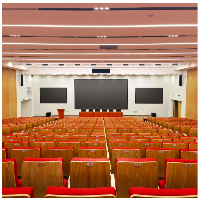 學(xué)校高度重視高水平科技創(chuàng)新平臺建設(shè),力求將其作為打造國家戰(zhàn)略科技力量的重要抓手,這一目標(biāo)同時體現(xiàn)在科研樓學(xué)術(shù)報告廳項目中。 重慶醫(yī)科大學(xué)科研樓學(xué)術(shù)報告廳擴(kuò)聲系統(tǒng)由德國SEEBURG acoustic line (SAL聲愛樂)和西班牙RAM audio打造,自主品牌DIGIRATE迪吉瑞為其配備高效穩(wěn)定的數(shù)字會議系統(tǒng),以滿足召開各類會議、學(xué)術(shù)討論、演講、報告、新聞發(fā)布、多媒體教學(xué)培訓(xùn)、觀看電影等活動需求,大大提高學(xué)校教學(xué)質(zhì)量與師生文娛活動水平。 主擴(kuò)是由兩個GL8c與4個GL8i組成的柱體式線性陣列揚(yáng)聲器,僅19厘米寬的箱體,也能保證高清晰度聲音還原和高質(zhì)量音樂重放,非常適合如報告廳這種需要遠(yuǎn)距離傳播的環(huán)境中使用,最終效果讓人滿意。 搭配2只Galeo S Sub大功率超低頻音箱,12個A1全頻揚(yáng)聲器組成環(huán)繞聲道,豐富的聲音層次感增加了聽者臨場體驗(yàn)感,舞臺返送則由4只A4全頻揚(yáng)聲器擔(dān)任,所有音響均由RAM audio Z系列功放驅(qū)動。