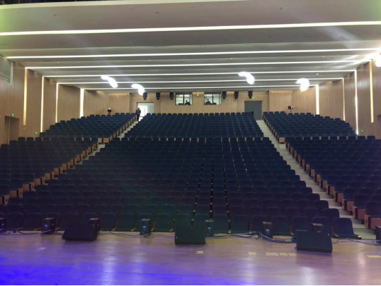 2019年區(qū)政府投資1.6億元藝術(shù)綜合樓,其中含一個1000人的演藝廳,以滿足學(xué)校日益增長的藝體活動需求。學(xué)校經(jīng)過嚴(yán)謹(jǐn)?shù)目疾煅芯浚罱K選擇了美國EV音響作為演藝廳的擴(kuò)聲系統(tǒng)。