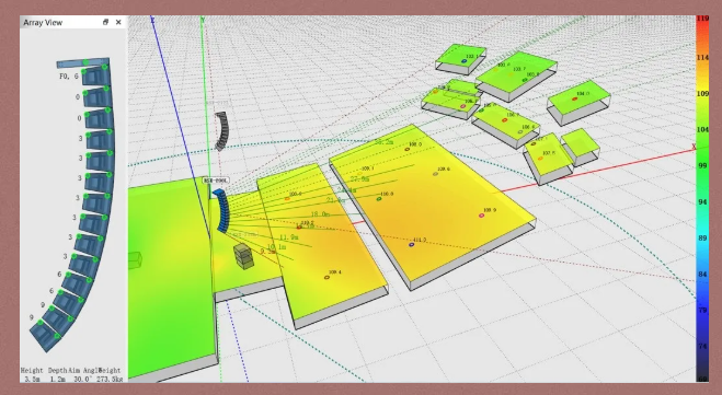 在正式進(jìn)場安裝之前,我們提前通過Resolution建模軟件仔細(xì)分析模擬了揚(yáng)聲器安裝點(diǎn)位、角度、聲場覆蓋等,為現(xiàn)場安裝及調(diào)試提供了更為具體的基礎(chǔ)和更多的時間。實(shí)際安裝過程中,揚(yáng)聲器在聲學(xué)結(jié)構(gòu)GRG上3D建模定位一次安裝完成,實(shí)現(xiàn)了精準(zhǔn)的覆蓋和良好的線陣耦合,為后續(xù)調(diào)試打下堅實(shí)的基礎(chǔ)。最終調(diào)試的結(jié)果和前期分析模擬完全吻合,