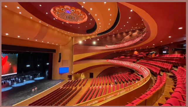 作為特大型甲等劇場,珠峰大劇院總建筑面積約為3萬平方米,觀眾廳設(shè)有池座、一層樓座和二層樓座共三層坐席,可容納約1600名觀眾,因此劇院所需聲音覆蓋的面積很大,聲場均勻度成為我們系統(tǒng)設(shè)計調(diào)試的一大挑戰(zhàn)。旅游創(chuàng)意產(chǎn)業(yè)園區(qū)內(nèi)標(biāo)志性建筑物,大劇院地處。