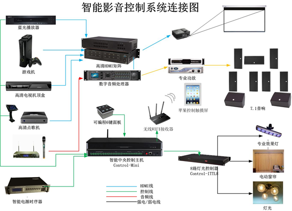 基本是以定制形式,通過常規(guī)中控主機實現(xiàn)IPAD、觸摸屏等控制功能,