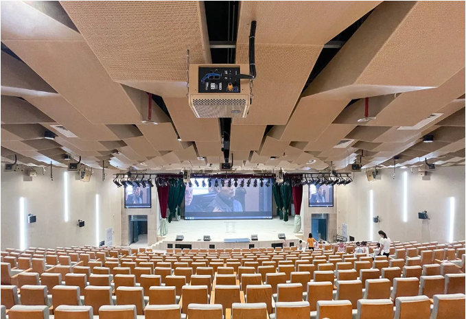 校方要求多功能廳音頻擴聲系統應具備足夠的聲音清晰度、均勻的聲場覆蓋和準確自然的聲像定位,在確保多種功能性使用需求的同時,還要求設備外觀設計與多功能廳設計風格統一,不僅性能卓越,外觀亦要簡潔大氣不失設計感,符合學校國際化的教學理念,該功能廳即將成為孩子們展示風采的多元化舞臺。