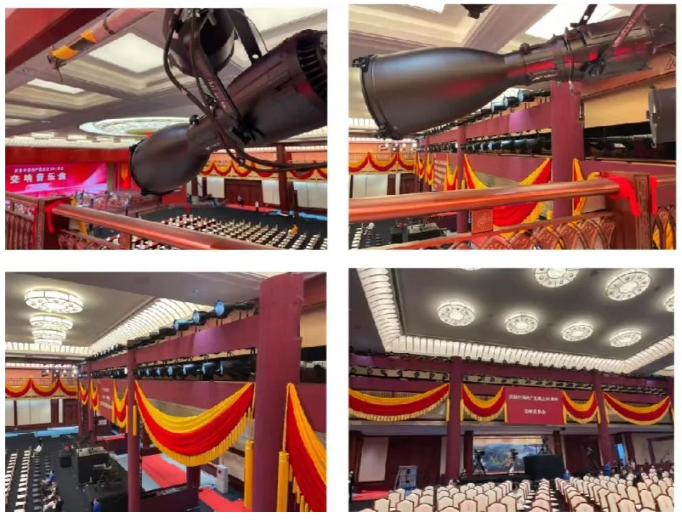 本次演出采用LED光源燈具,共計118臺,其中5度LED成像燈82臺、LED切割電腦燈8臺、LED平板燈10臺、LED四眼燈14支、LED搖頭電腦燈4臺。袁京男表示,依據前期燈具選型定制化參數,選用了廣州鑫皇實業有限公司(以下簡稱:鑫皇實業的12臺全光普成像燈參數XH-J18-05K和70臺成像燈XH-17-05A,兩款燈具完全滿足音樂會對舞臺燈光照度、色度、顯色性等硬性需求,舞臺面光特意選擇了靜音款LED成像燈XH-17-05A該產品具有靜音、投射距離遠、物理切扉、高色溫、線性調光、顯色指數高(Ra≥95  )等特色,其出色的表現為本次音樂會錦上添花。
