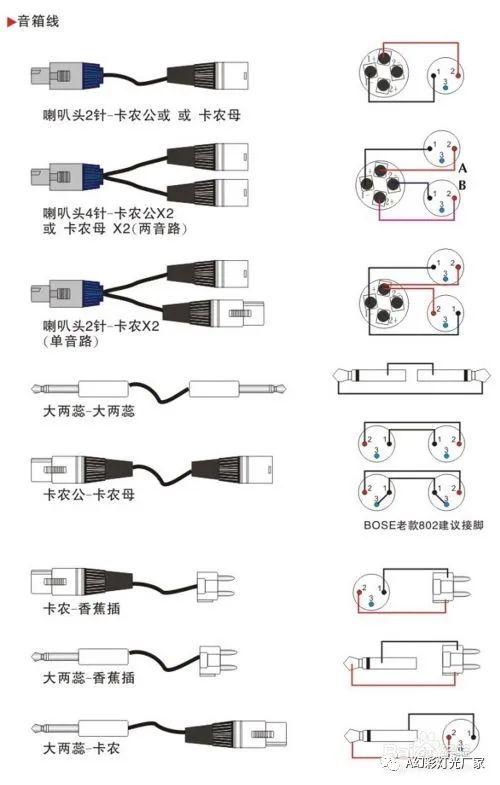 | 專業(yè)舞臺燈光音響設備信號線各種接頭接線方式 |