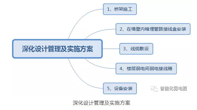 該部分內(nèi)容主要講述工程實(shí)施,包括橋架施工、墻壁內(nèi)暗埋管路接線盒安裝、線纜敷設(shè)、樓層配電箱接線箱、設(shè)備安裝等重要內(nèi)容。