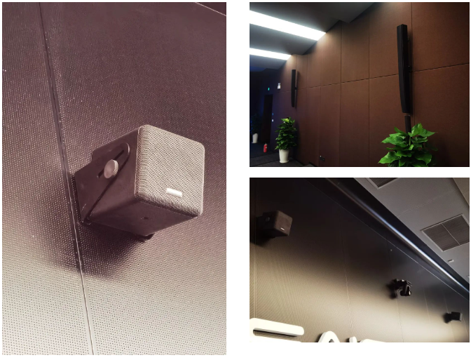 上汽集團總部VR演播報告廳的大屏是一塊國內唯二的定制曲面屏,在任何觀看角度都能獲得極致的觀看體驗。為了盡可能減少擴聲系統布置給觀看環境帶來的影響,我們均采用了超緊湊設計的音響系統,設計配置6只SAL L16j弧形音柱,若干只袖珍型i4、i5同軸揚聲器,搭配G Sub 1201超低揚聲器。