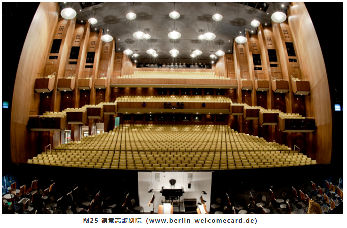 對于歌手而言,提供<35ms早期反射聲,只有舞臺上布景的反射以及臺口側(cè)墻(包括臺框和臺口側(cè)包廂或樓座欄板)的散射能夠做到。對于樂隊(duì)而言,下沉式樂池四周的墻面、懸挑的頂部以及池座上部的包廂欄板等都能提供充足的<35ms早期反射聲。