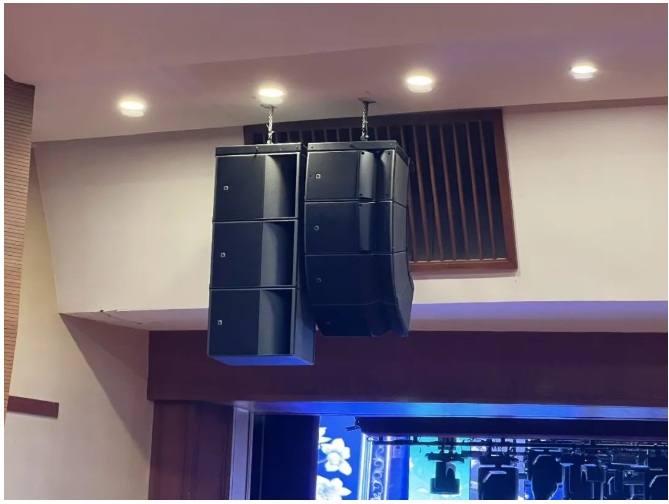 主擴使用L-Acoustics A15i(A15i Foucs、A15i Wide)。A15i擁有Panflex技術,可在現場很直觀地調節好音箱的聲輻射方向,保證觀眾席各個區域內都可獲得較為均勻的直達聲,精準的角度投射有利于實現聲場的全覆蓋;低頻音箱使用KS21i,擴展低頻下限。 主擴系統明裝線陣列吊掛置舞臺上方,明裝吊掛使聲音不受阻擋,能大幅度減少對聲能的損失并提高清晰度。且A15i外觀干凈整潔符合場地的審美需求,是聽覺效果和視覺效果的最佳解決方案。 補聲和返送系統選擇X12多功能同軸系統揚聲器。擁有90°x60°橢形指向性,可根據現場聽音需求進行調整,確保獲得最真實的聽感。 臺唇比較靠近觀眾區域,選擇小巧的5XT揚聲器補充前排觀眾的聲音能量,有效避免對觀眾視覺體驗造成影響。另外,臺唇高度的設置也十分合理,恰好高于桌子避免被遮擋,使前區的聽眾獲得更多直達聲。 調音臺使用兩張DiGiCo Quantum 225互為鏡像備份,兩張同型號、同版本的調音臺之間進行實時的數據同步,一個人可同時操作兩個調音臺,方便快捷。主備設備還能隨時切換,穩定性大幅提高,全面保障演出過程中音頻信號穩定傳輸。 升級改造后的效果受到大家的一致好評,沉浸式的聽音環境有效提高觀眾的感官體驗,震撼的效果深深感染和陶醉著在場的每一位觀眾,引發強烈的情感共鳴。